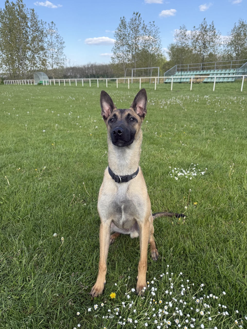 • A developing obedience foundation that already includes sit, down, place, recall, and heel work with growing reliability around distractions.